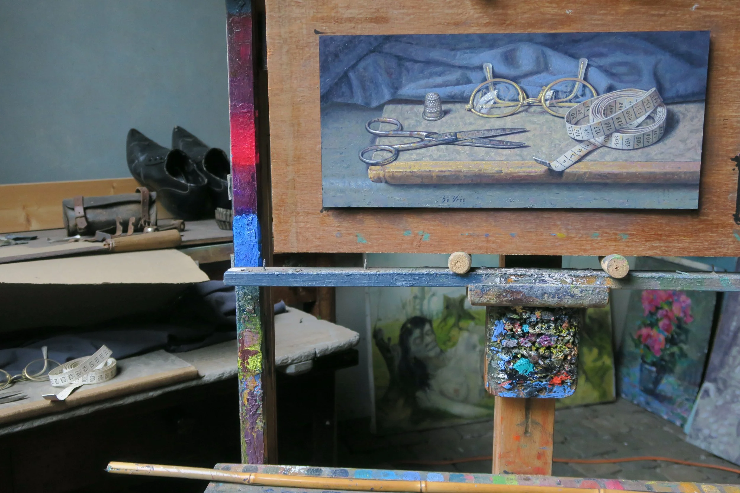 Het schilderij moet nog professioneel gefotografeerd worden bij Art Revisited, maar ik wilde alvast een klein voorproefje met jullie delen. Dit stilleven heeft voor mij een bijzondere betekenis, omdat het een ode is aan de moeder van mijn vrouw, moemoe Jeanne en haar vertrouwde naaigerief.